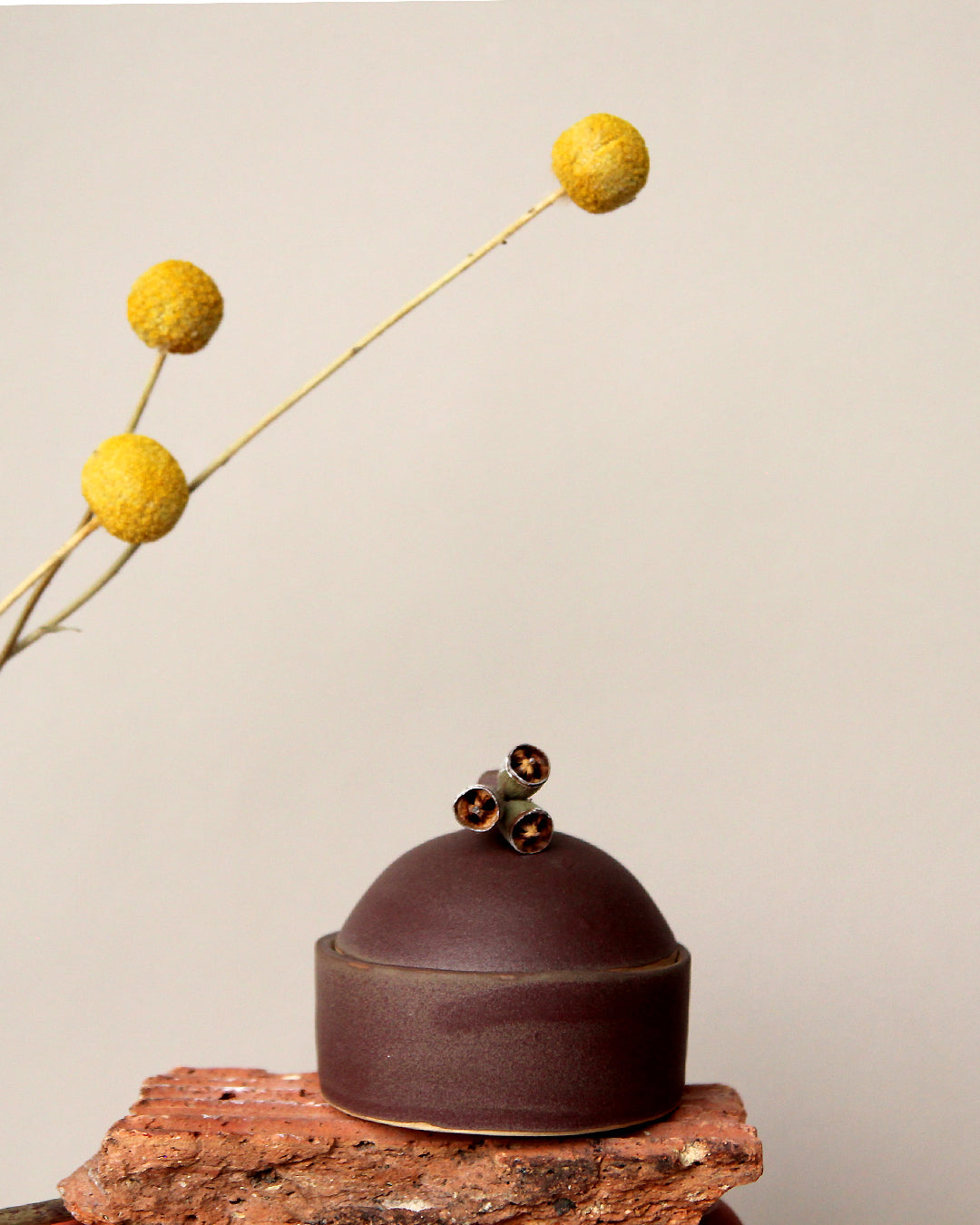 The Box Francisca is an exquisite keepsake, featuring a small ceramic box crowned with eucalyptus seed pods. This beautiful vessel embodies the idea of flower seeds representing the knowledge and wisdom passed down by women. The perfect gift for a loved one, the Box Francisca elegantly conveys emotion and sentiment.