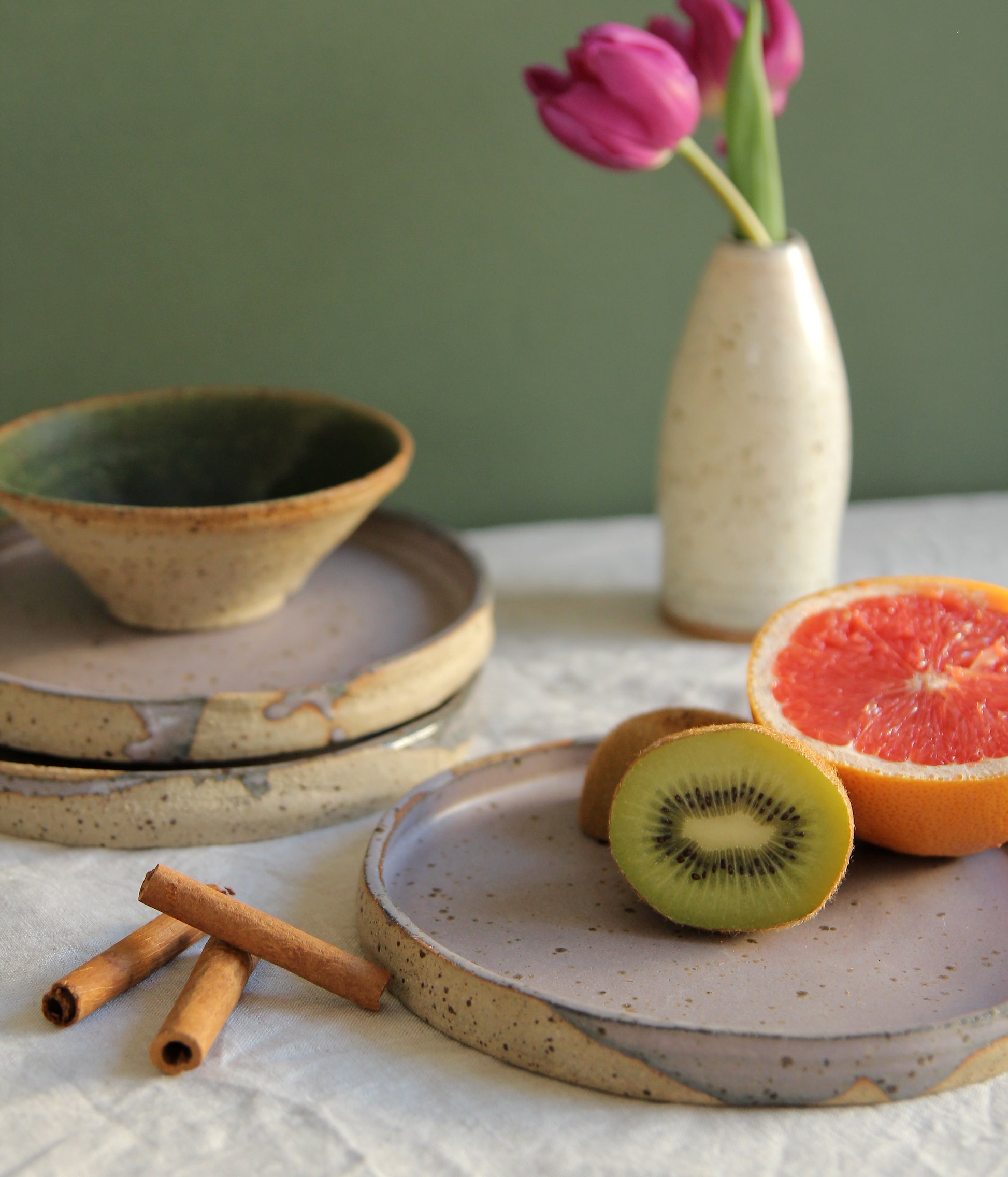 Lot de 3 assiettes en grès lava et émail orage