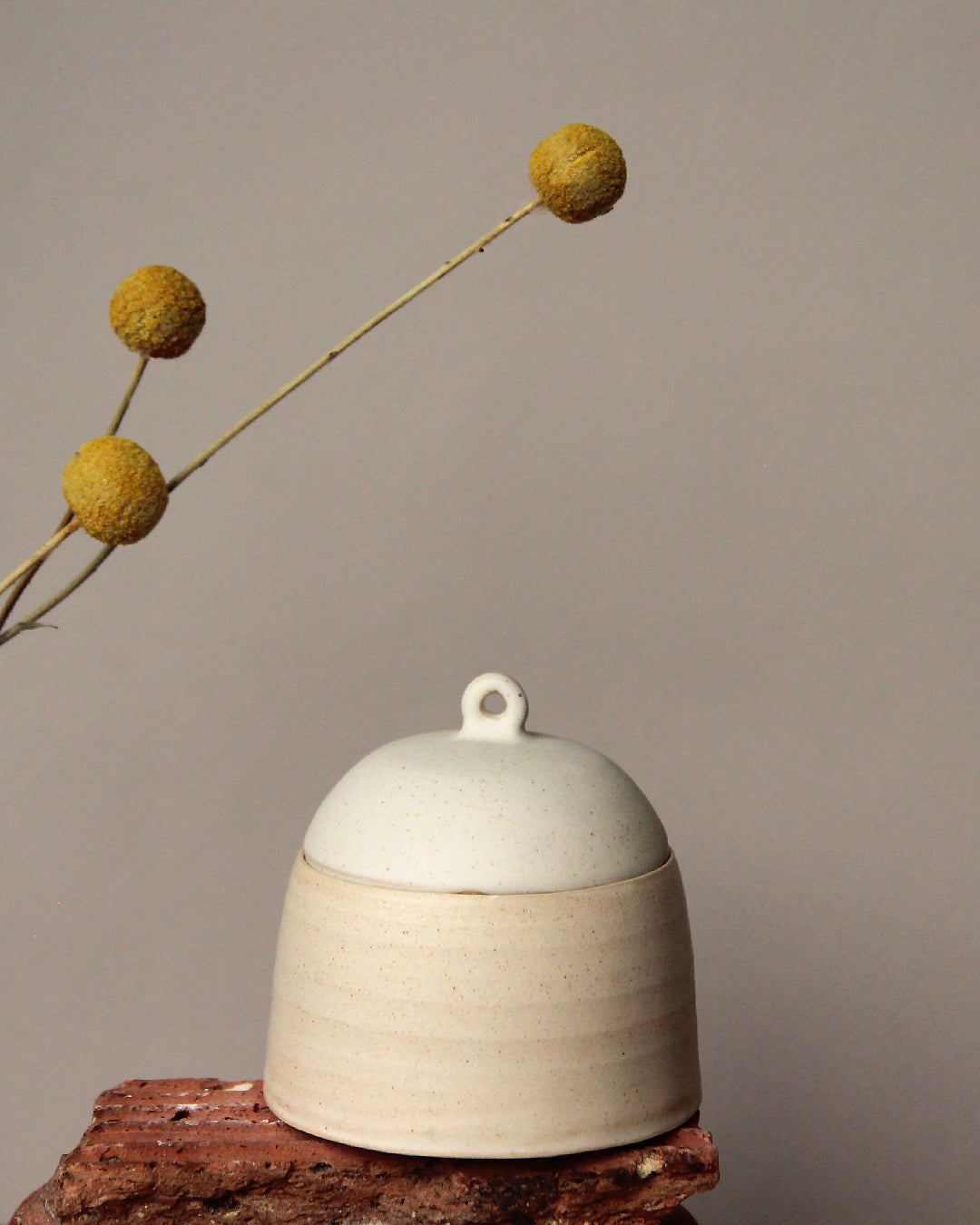 This unique Tea-box Silma captures the essence of a strong, independent woman, the elegant ceramic box is handmade and charmingly glazed in a calming oat color. Perfect as a gift or a decorative piece, its timeless design is a reminder of the beauty of resilience.
