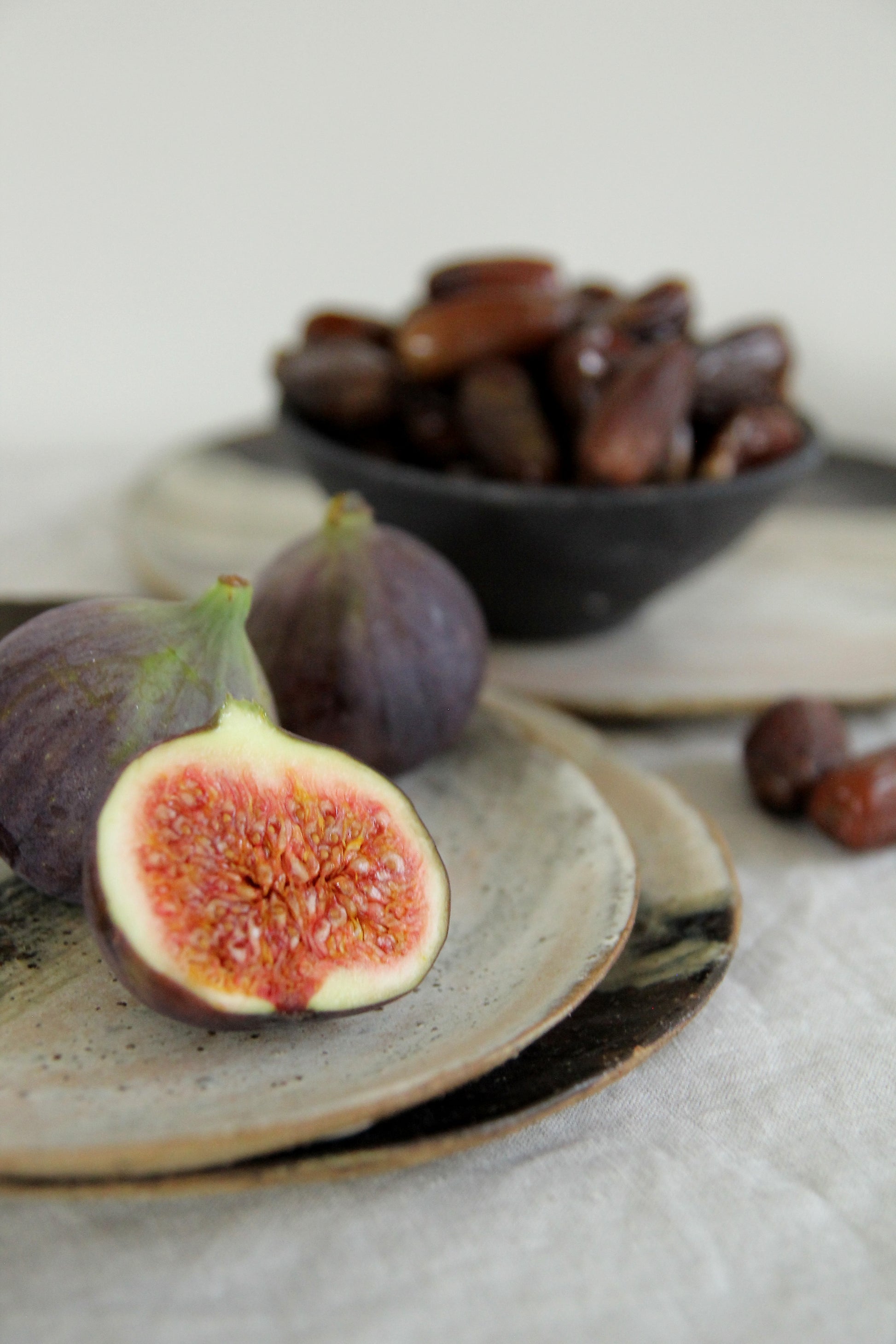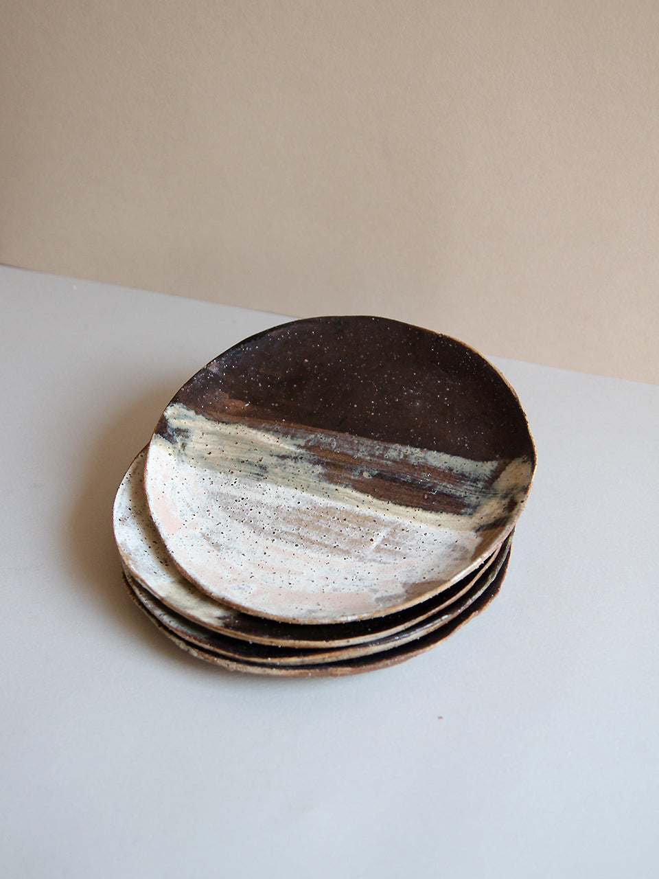 Handmade dessert plates. Glazed in black and nude